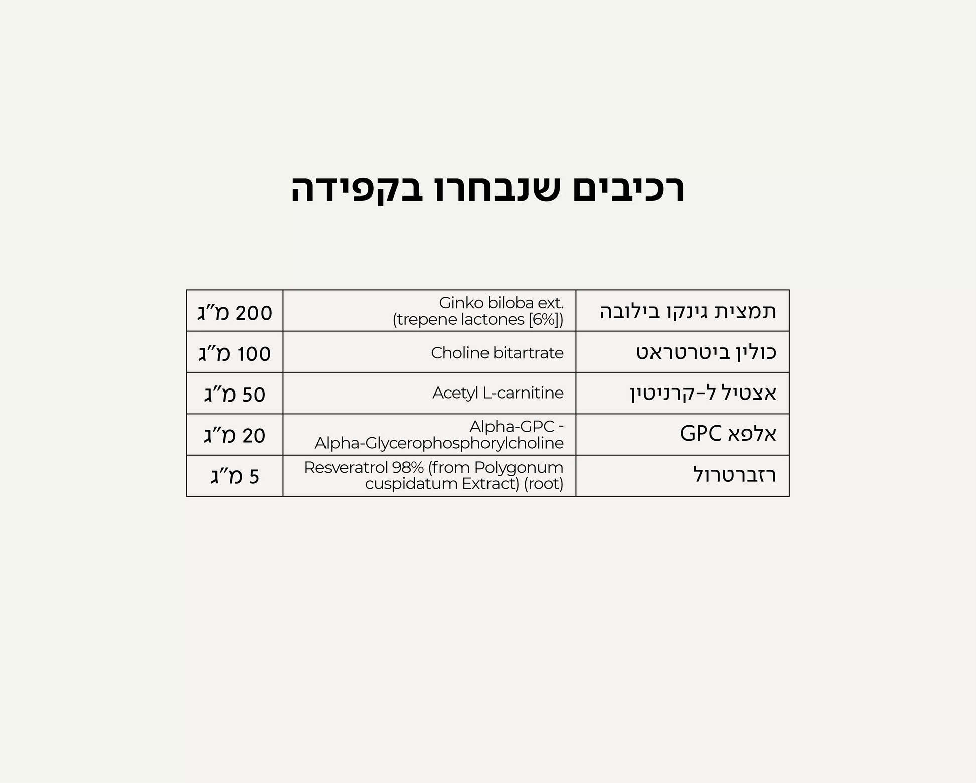 אתם יודעים בדיוק איפה הנחתם את המפתחות, זוכרים את השם של הבחור החדש בעבודה ואפילו את הקוד של כרטיס האשראי. כן, הגיל והסטרס היומיומי יכולים לעשות לנו תרגילים בזיכרון. אבל, אפשר להילחם בזה - יש דרכים לשמור על הזיכרון שלנו בכל גיל. בדיוק בשביל זה פיתחנו את MemoRe - פורמולה ייחודית עם רכיבים טבעיים שנחקרו מדעית לסיוע בשמירה על בריאות קוגניטיבית וזיכרון חד.